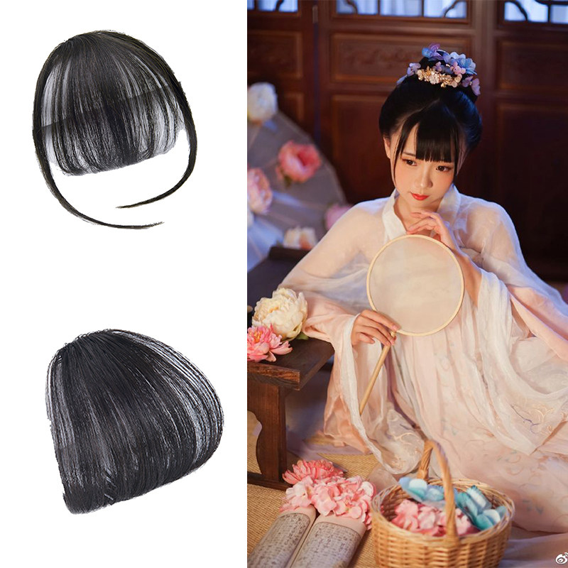 Ancient costume wig Liuhai antique style Hanfu COS sideburns Qi Liuhai stage performance Tsing Yi Hua Dan Liuhai film