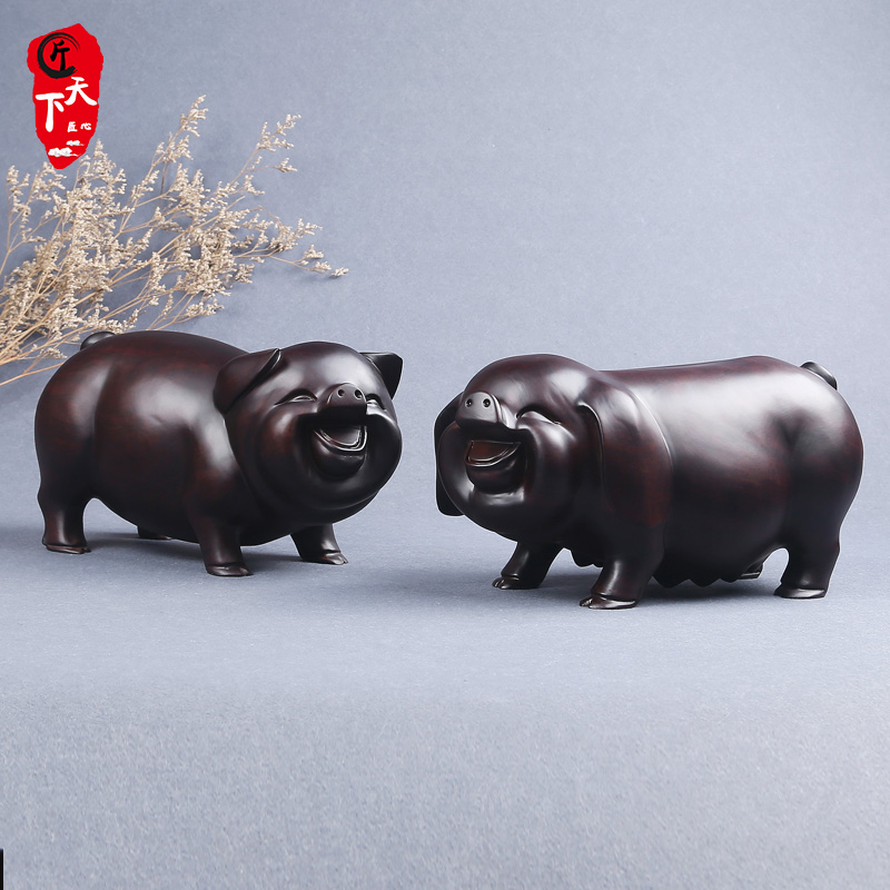 Ebony wood carving pig ornaments Home accessories Wood raw materials handmade log carving processing custom crafts