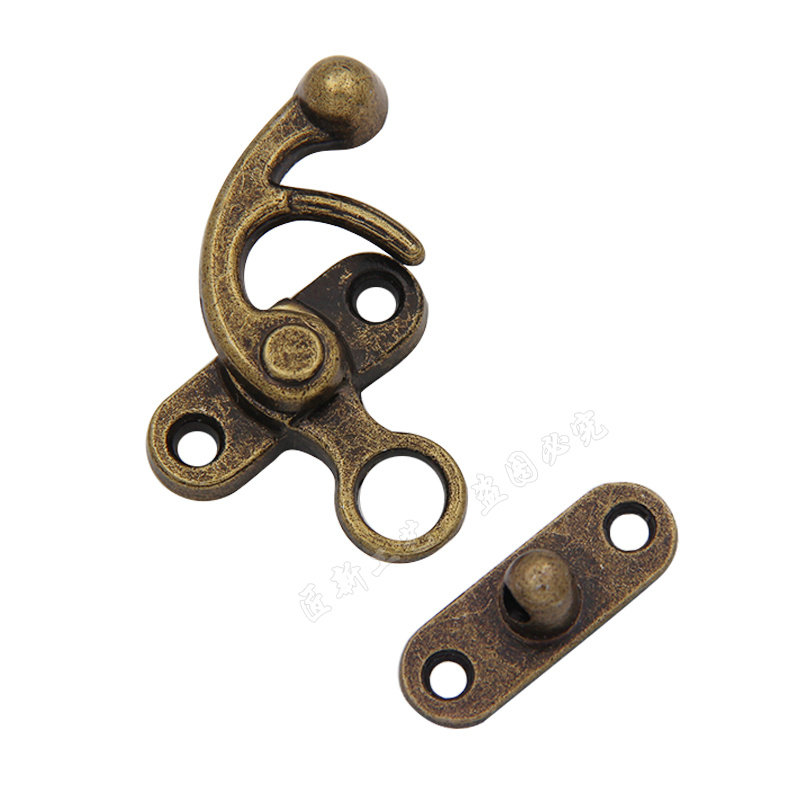 29 * 35mm zinc alloy horn hook with insert cover buckle imitation antique lock hook wood case gift box bending hook buttoned bag lock catch