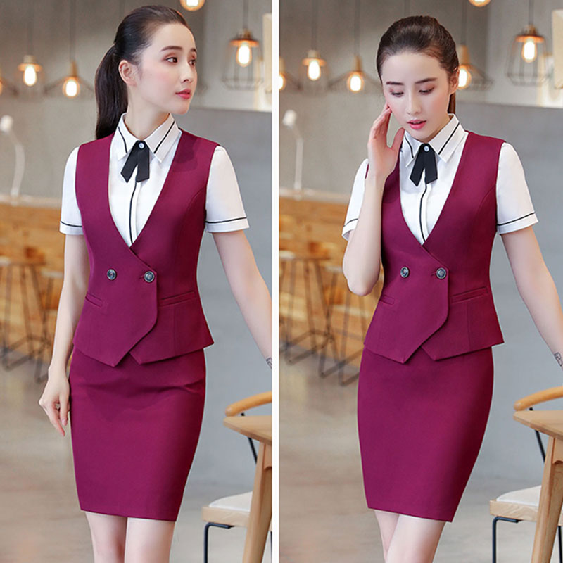 Blue vest Short sleeve Blue shirt skirt Black vest Short sleeve White shirt Skirt Burgundy vest Short sleeve white shirt Skirt Blue vest Blue long sleeve shirt skirt Black vest Long white