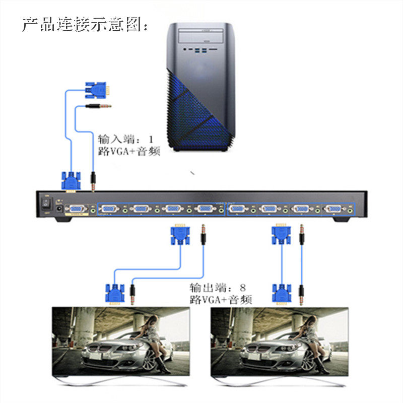 SZHY-LINK industrial class 8-mouth VGA dispenser 1 minute 8 with audio high-definition film dispenser 450MHz