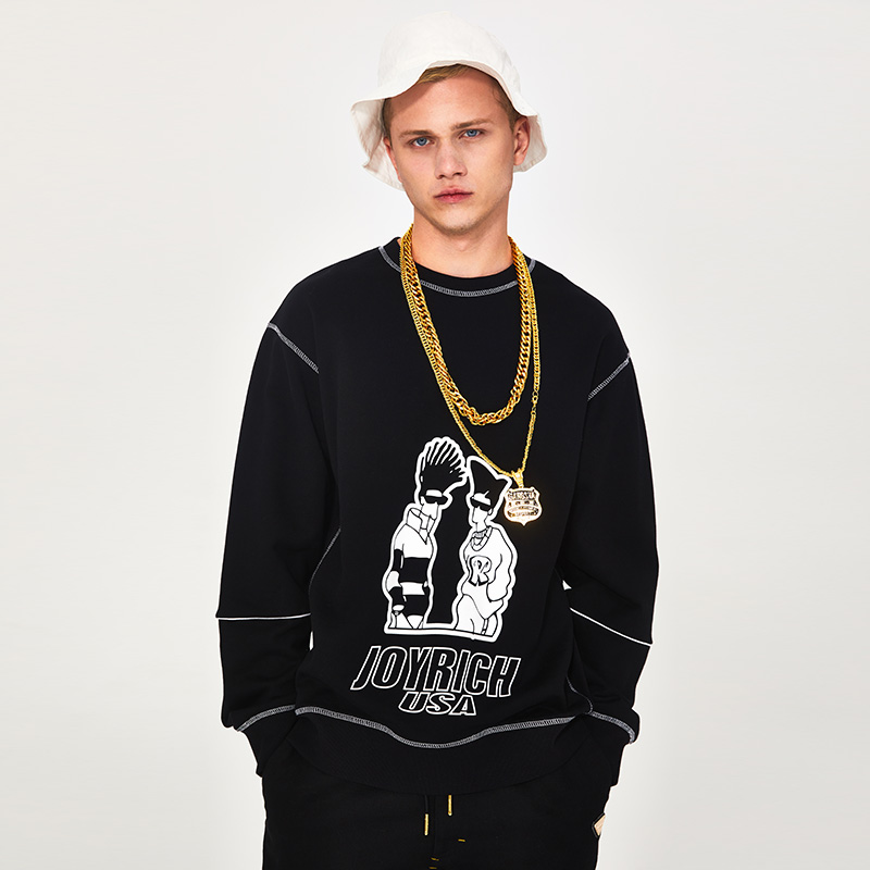 JOYRICH popular logo lovers cartoon round collar turtleneck loose trend contrast color loose hoodie