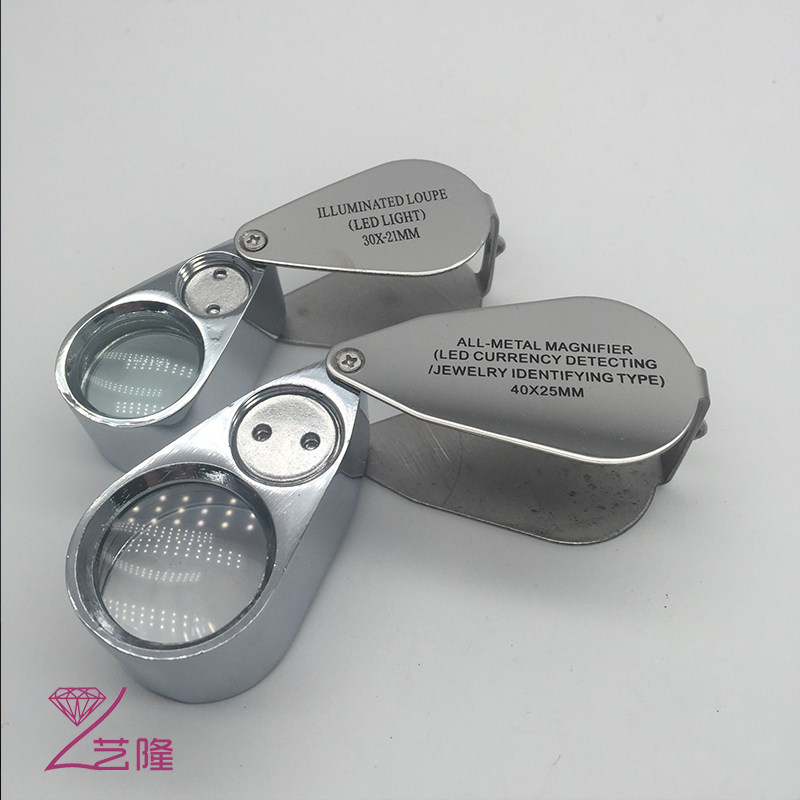HD 40 times with lights jewelry purple magnifying glass handheld portable high magnifying glass text play calligraphy and painting banknote identification
