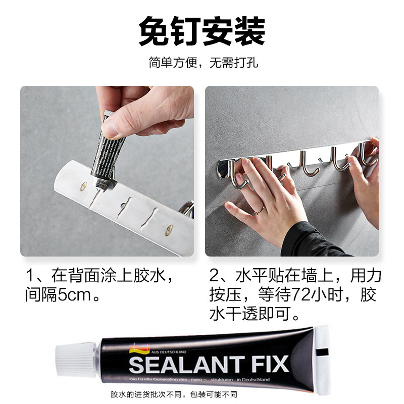 Free hole 304 stainless steel hanging hook Coat hook Powder room hook Bathroom pendant row hook Wall hanging kitchen hook