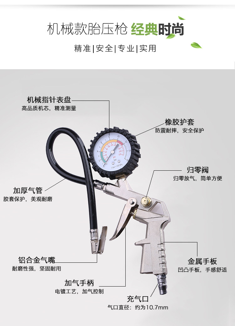 Car motorcycle electric vehicle air pump air nozzle inflatable head tire tool air nozzle connector with air pressure gauge