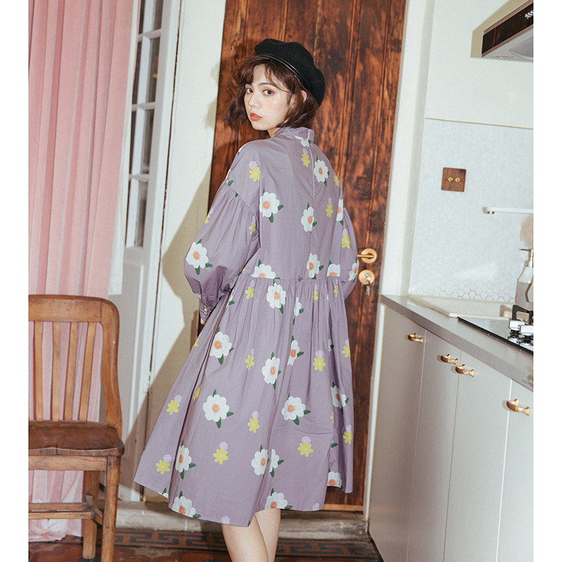 Nap homemade Japanese custom printing medium and long version of retro dress first love skirt autumn skirt women 2020 new
