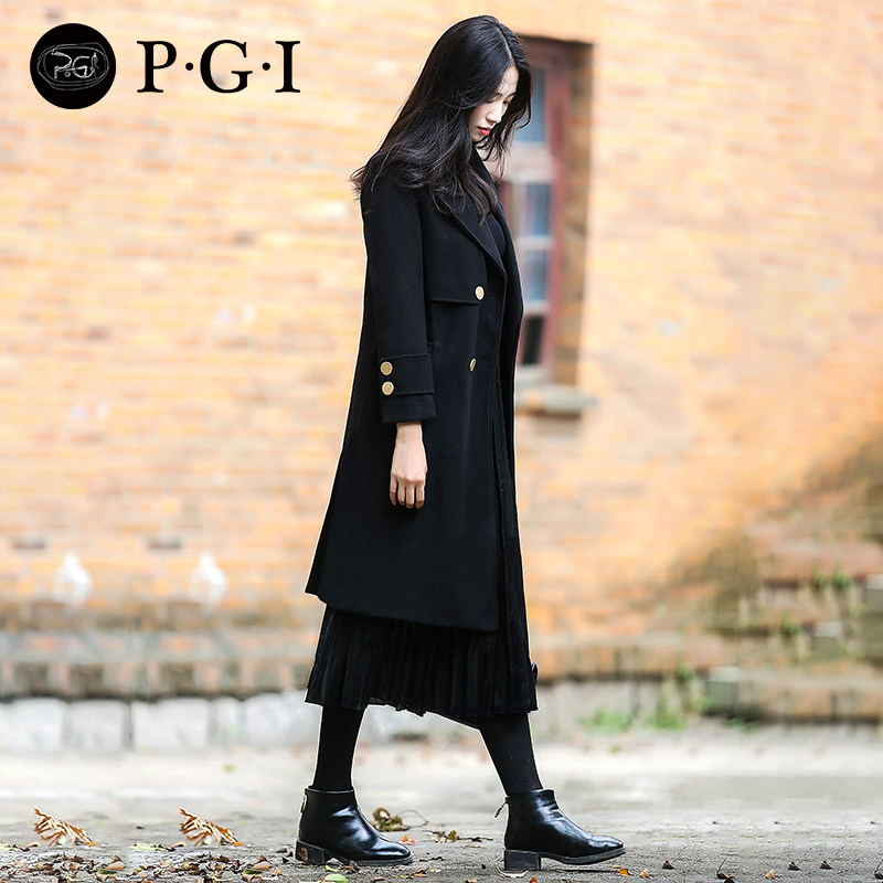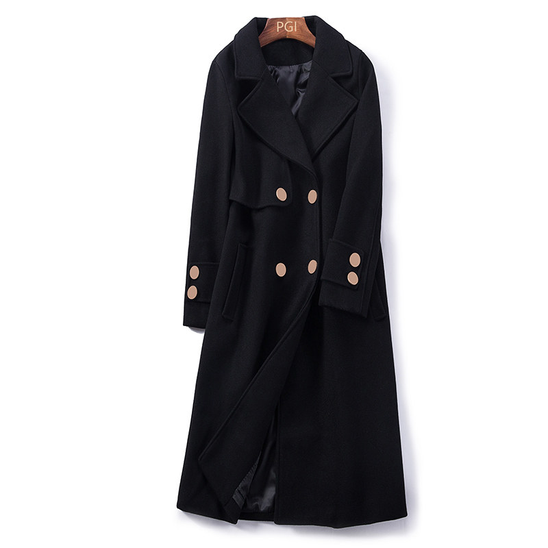 2020 new black workwear woolen coat women's long version thickened professional woolen coat women's winter OL overalls