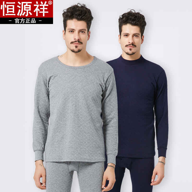 Hengyuanxiang middle-aged and elderly men's pure cotton underwear thickened autumn clothes sanitary pants suit air cotton three-layer heating clothes men