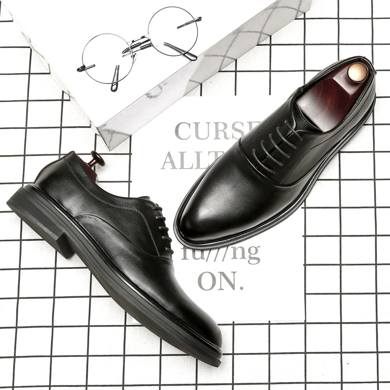 Korean version Inlenbum small leather shoes business positive dress 100 hitch to work youth pop casual breathable men's lace board shoe tide-Taobao