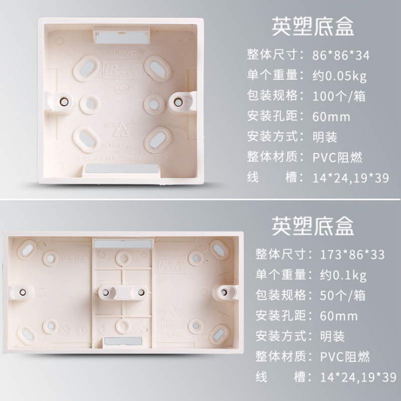 British plastic thickened U-PVC bottom box universal 86 clear-mounted single bottom box switch bottom box junction box plastic clear box