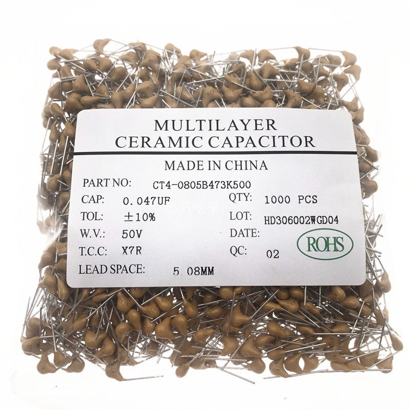 CT4 Monolithic capacitor 473K Material X7R plusmn 10% 47NF 50V 0 047UF Pitch 5 08mm