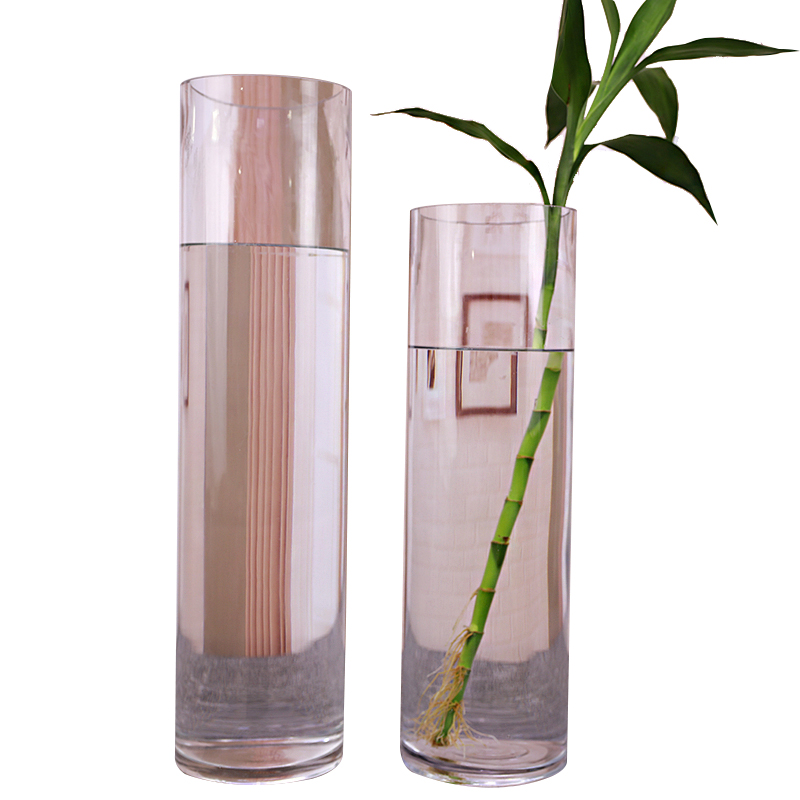 King size vase simple glass transparent floor-to-ceiling ornament living room dining table water bamboo rich bamboo dried flower arrangement straight tube