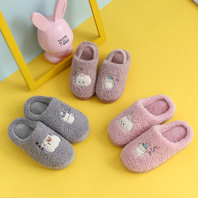Children Cotton Slippers Girls Winter Cute Cartoon Male Non-slip Home Warm Indoor Warm Indoor Baby Fur Plush Tug