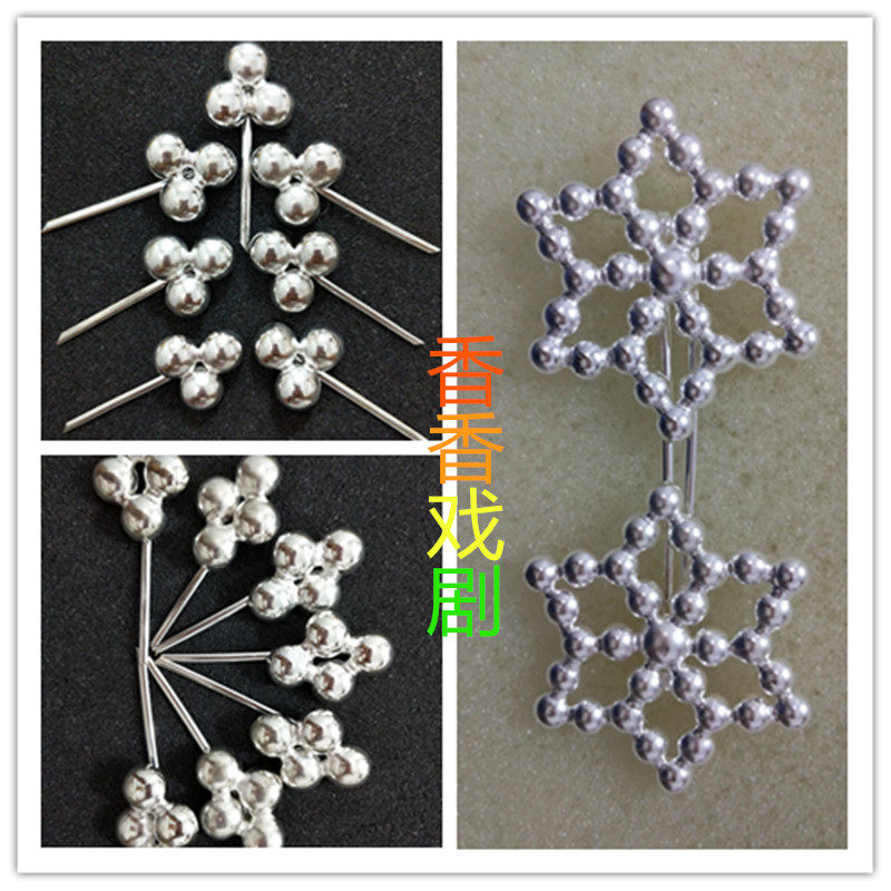 A complete set of 7 double nails, 7 triple nails, 7 quadruple nails, 7 hexagonal nails, a pair of hexagonal flowers, a pair of silver nail earrings, a pair of bone needles, a pair of hairpins, and a complete set of three large hairpins 41 piece flat