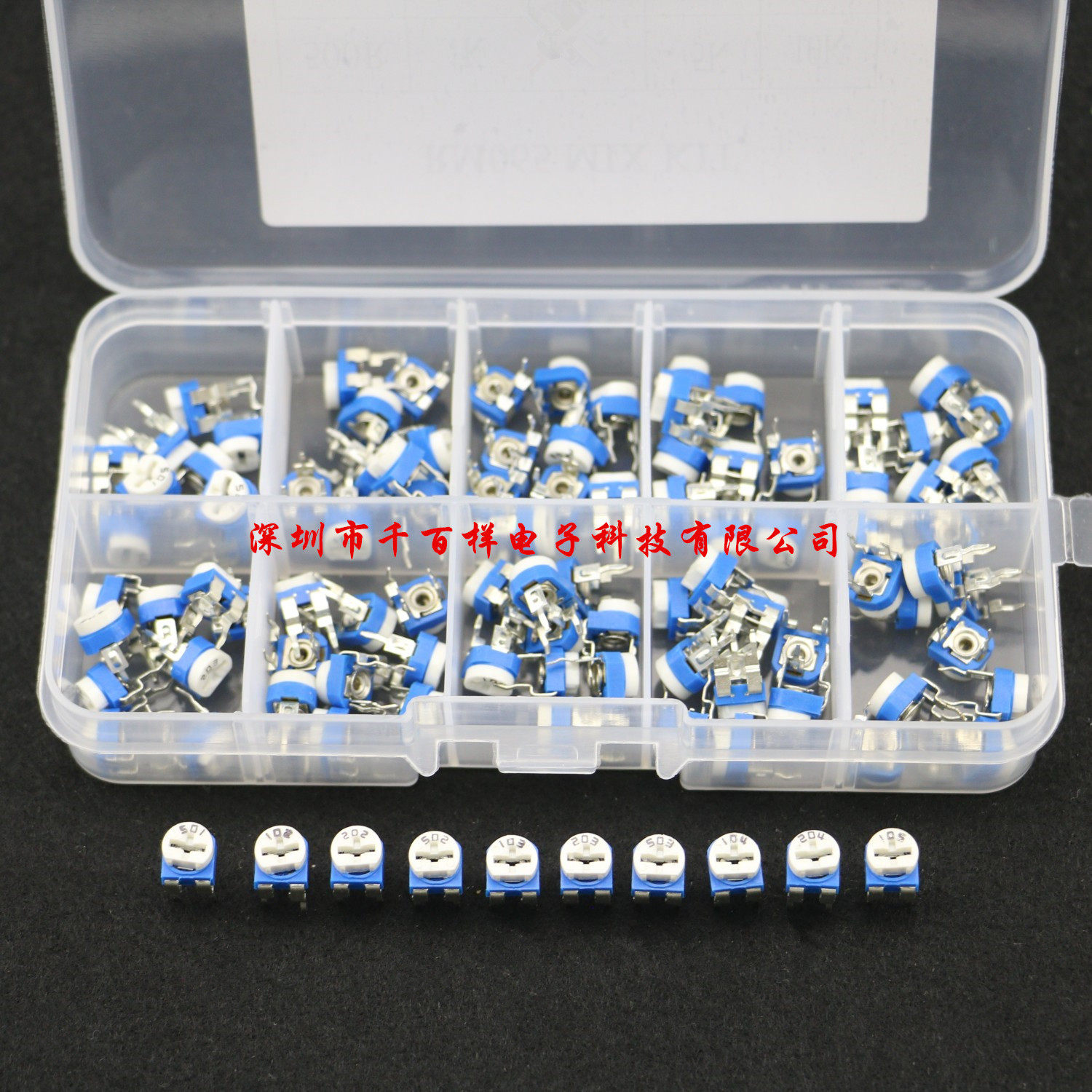 10 kinds of 100 (100R-1M) RM065 blue and white adjustable resistance 6MM classification kit