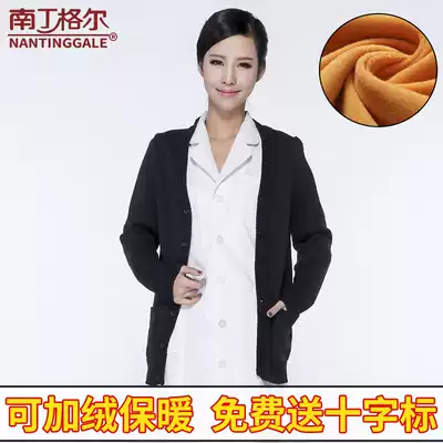 Nurse sweater women's coat cardigan autumn and winter New Blue Nurse's clothing outside sweater plus velvet thickening