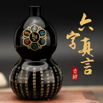 Jinghu Natural Obsidian six-character truth, Heart Sutra, Great Compassion Mantra, home lucky charm, town house living room gourd decoration