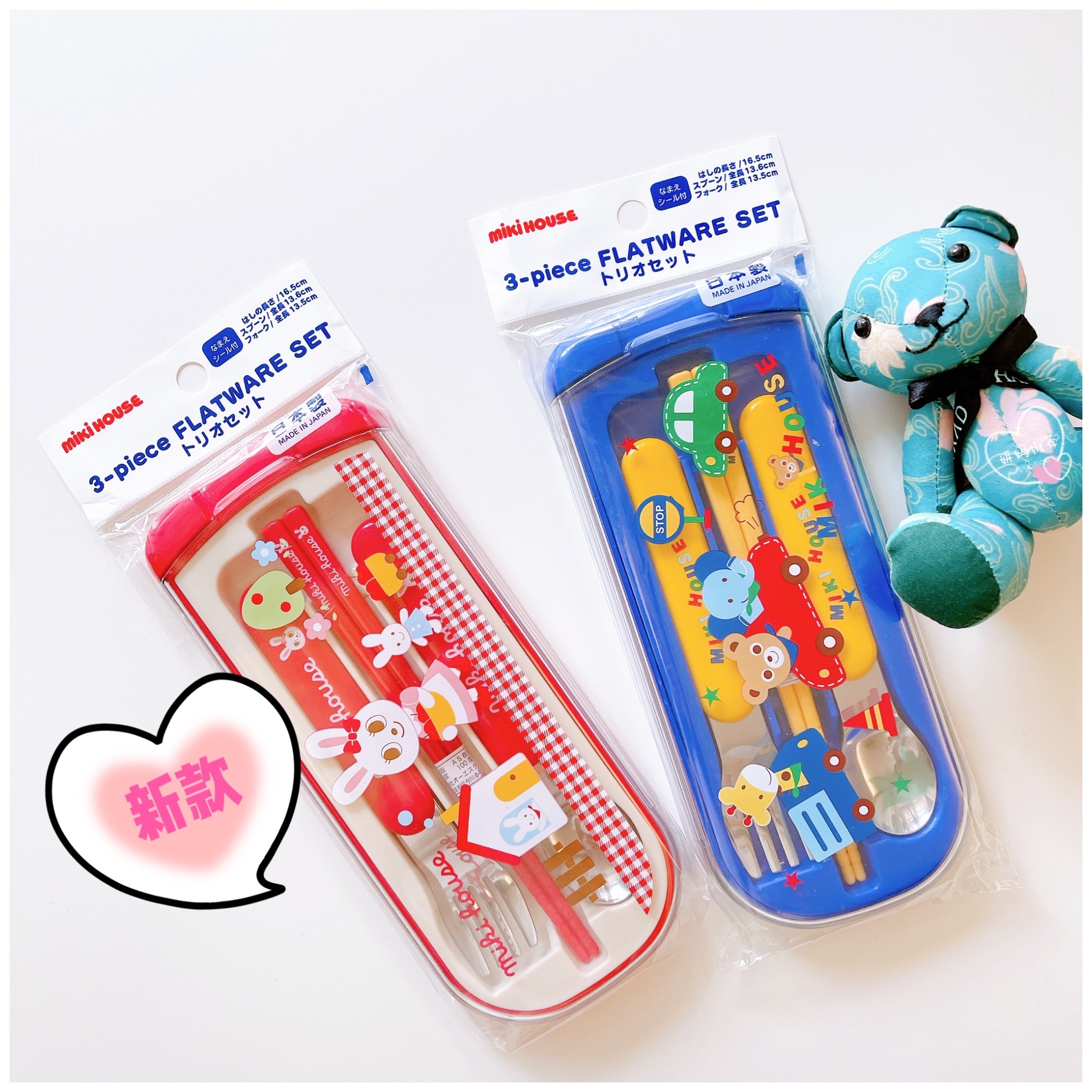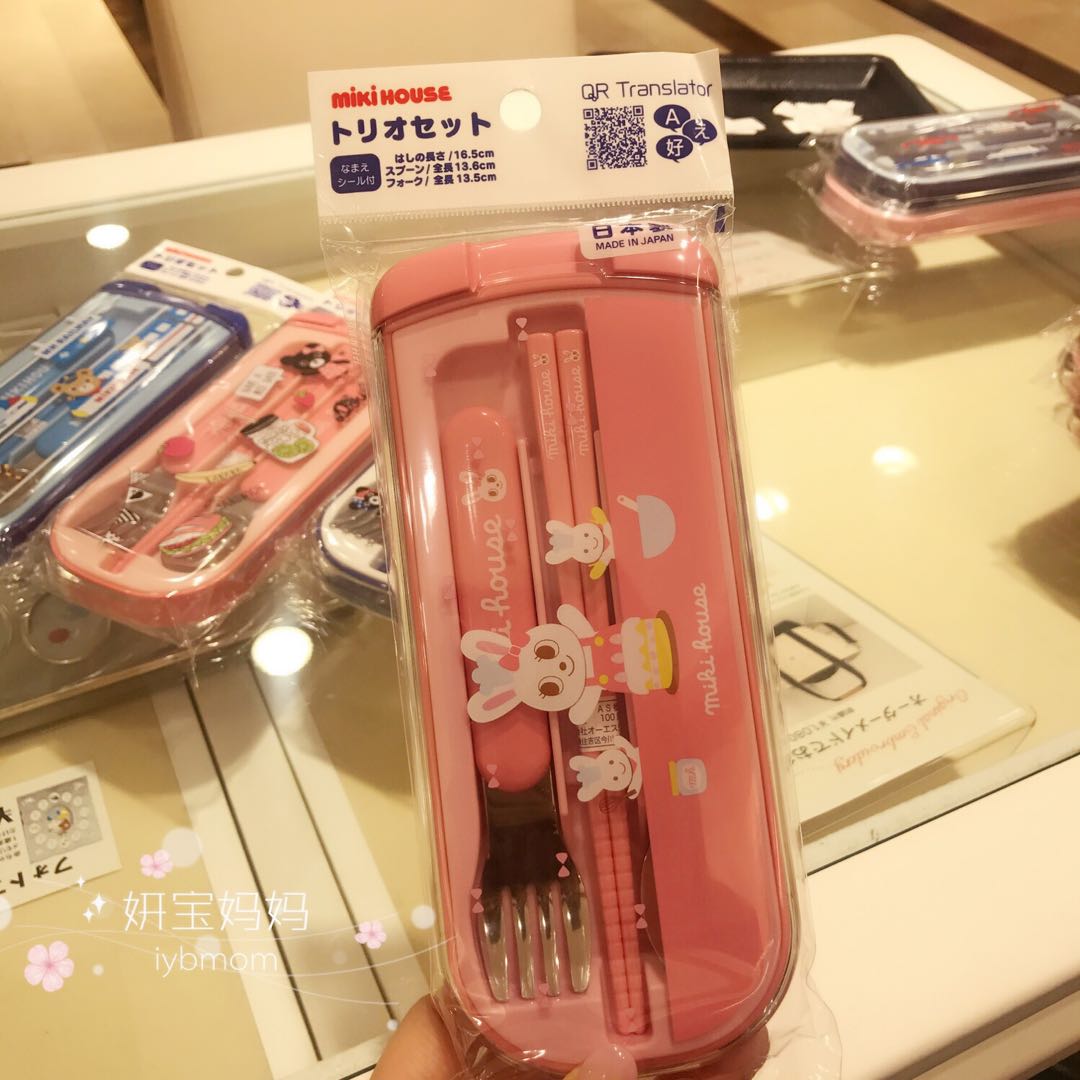 Japan system mikihouse new children cutlery stainless steel spoon fork chopstick set out for portable