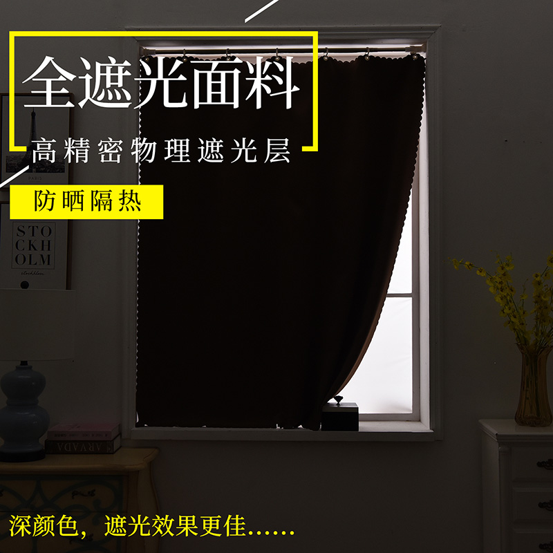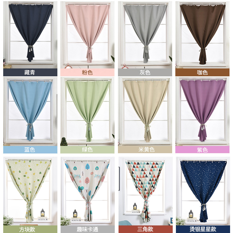 Simple small floating curtains Shading bedroom hole-free installation curtains Half curtain short door curtain short window installation-free telescopic rod cloth