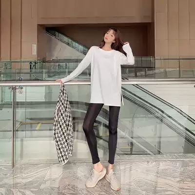 Spring and autumn new Korean solid color round neck long sleeve T-shirt women wild cotton white loose T-shirt base shirt Women