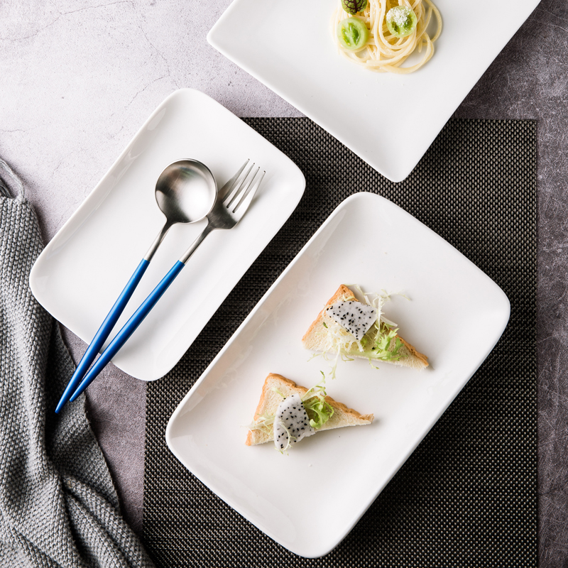 White Plate Ceramic Pure White Home Ceramic Cutlery Minima Photo Rectangular Square Dish Commercial Enteral Powder Square Pan