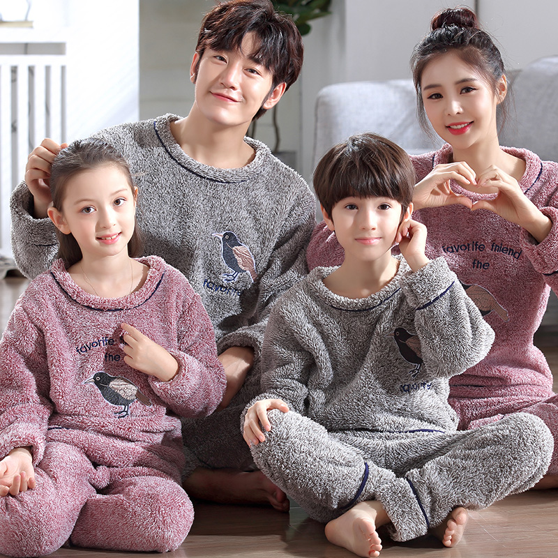 Parenting Pyjamas Winter Coral Fleece Plus Suede Thickening Mother Woman Family of three Flannel Suede Autumn Winter home Suits Suit