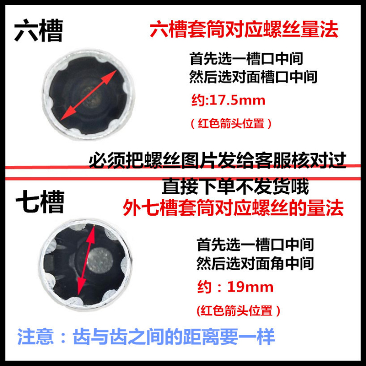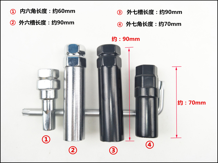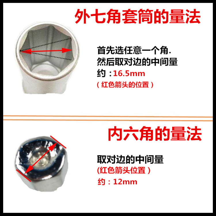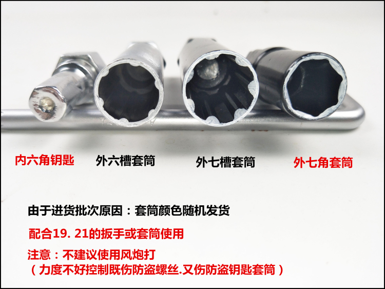 Outer seven-corner socket 16.5MM inner hex wrench key outer 7-slot sleeve (must contact customer service to check) outer six-slot socket (must contact customer service to check) large seven-sided sleeve (must contact customer service to check)