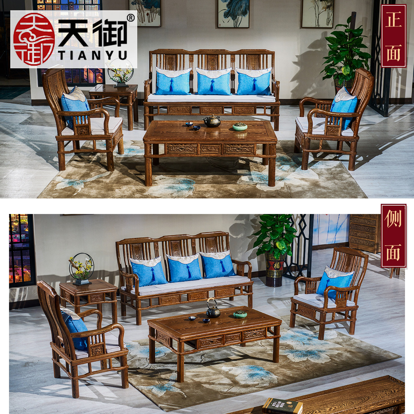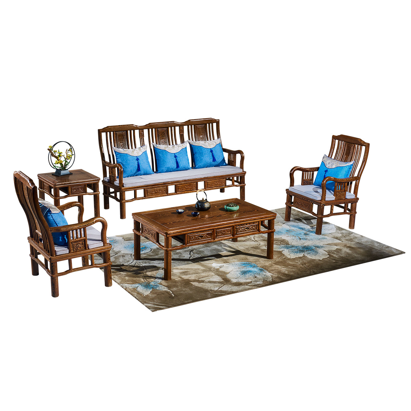 Mahogany sofa new Chinese-style solid wood living room small apartment self-assembly combination antique furniture chicken wing wood living room furniture