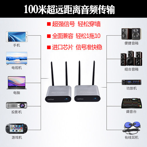 100m wireless audio transmitter + Bluetooth adapter 1 send 2 receipts (imported chip + plug and play + 1 year replacement)
