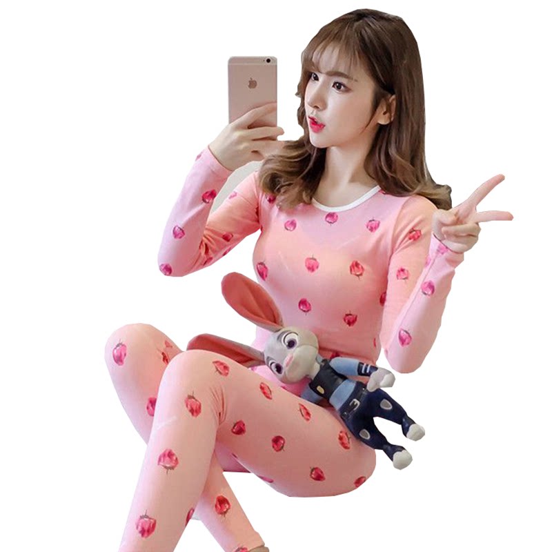 Cold-proof warm pajamas women's winter plus velvet thin section self-cultivation student bottoming inner wear autumn clothes sanitary trousers home service two-piece set