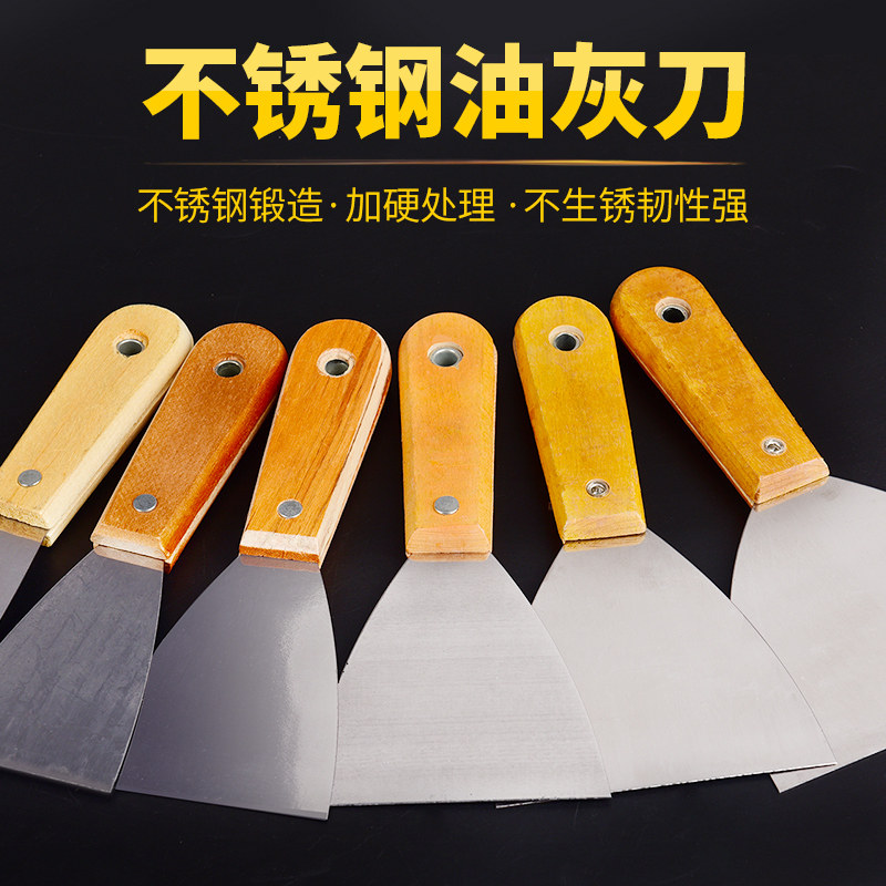 Putty knife stainless steel thickened scraper batch knife scraper putty blade 5 inch wooden handle blade batch soil knife batch gray knife