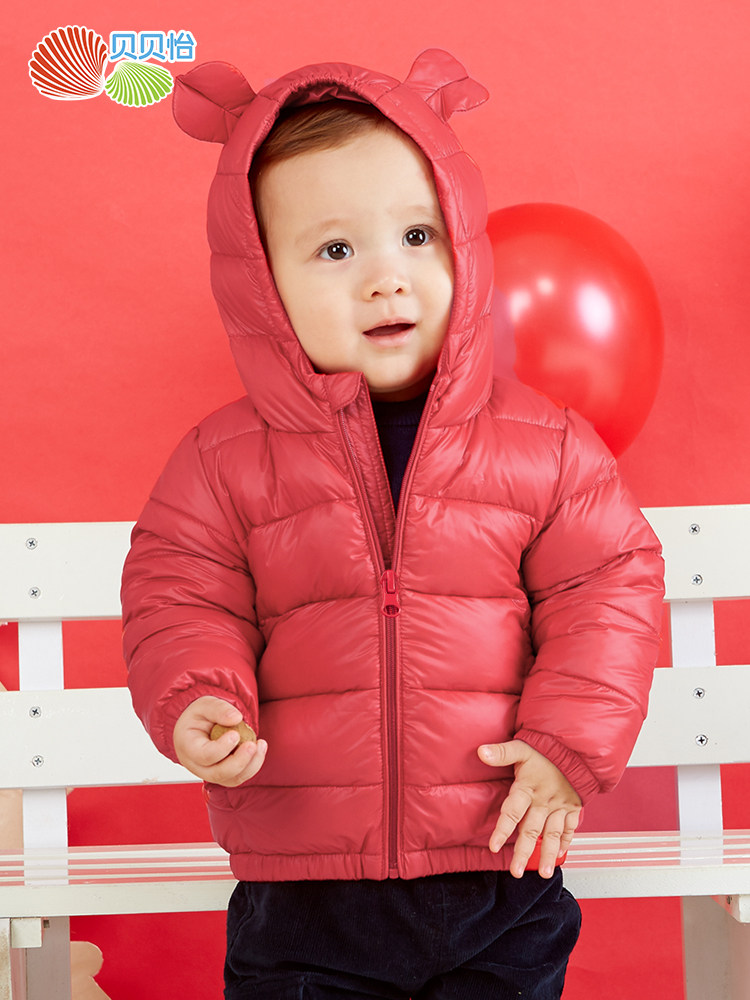 Beibeiyi children's down jacket light and thin boys and girls hooded top new year winter clothes baby red down jacket