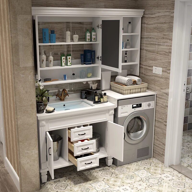 American bathroom cabinet Solid wood bathroom sink Hand wash basin cabinet Combination drum washing machine Companion cabinet