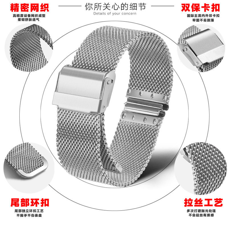 Milan watch strap men's and women's metal steel strap substitute dw Tissot king CASIO stainless steel bracelet accessories
