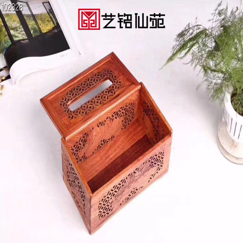 Burmese Hollowed-out Tissue Box Big Fruit Purple Sandalwood Napkin Box Solid Wood Long version of paper towel box Living room Home containing toilet paper box
