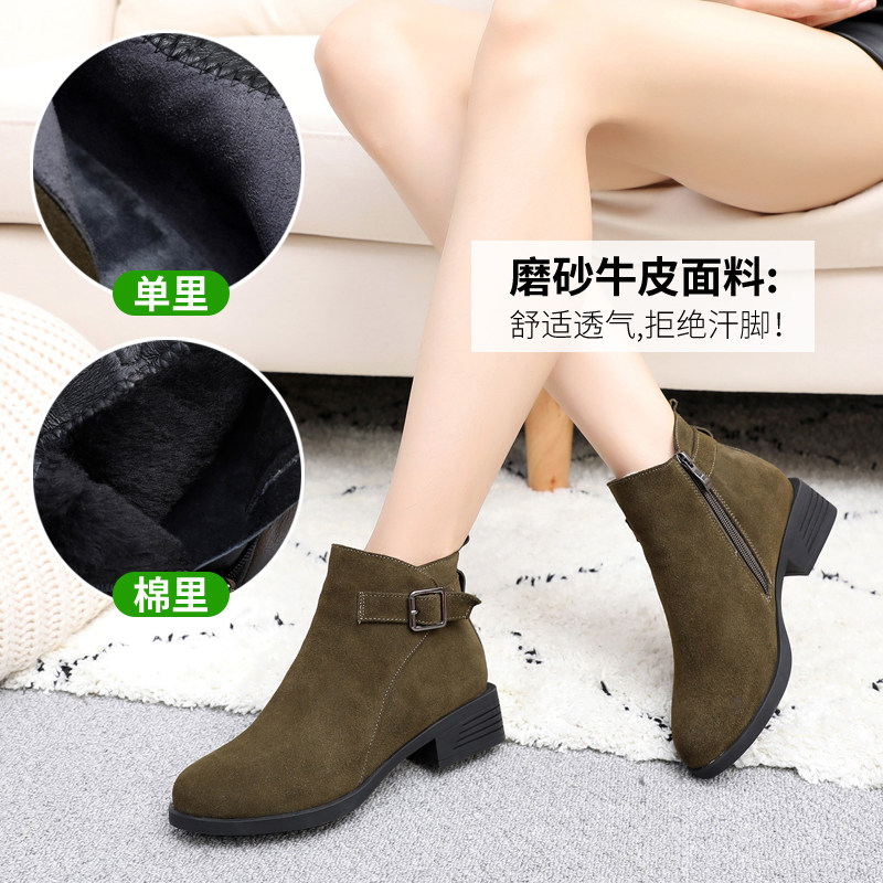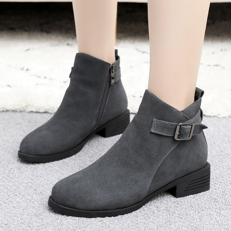 2021 new large size booties women's 40-43 winter flat boots 41 leather joker boots frosted Martin boots