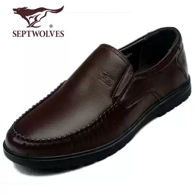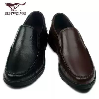 Seven wolves men's shoes leather business casual shoes men's leather shoes father shoes head layer cowhide soft leather soft shoes