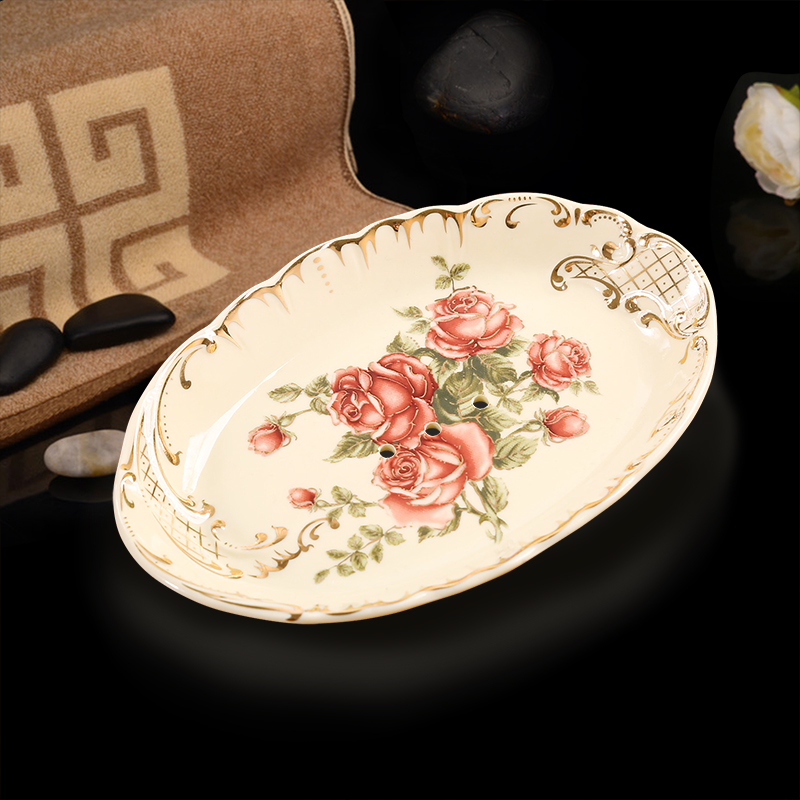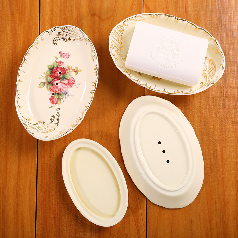 Creative ceramic soap box European style pastoral double drain soap box Fashion large handmade soap dish soap dish