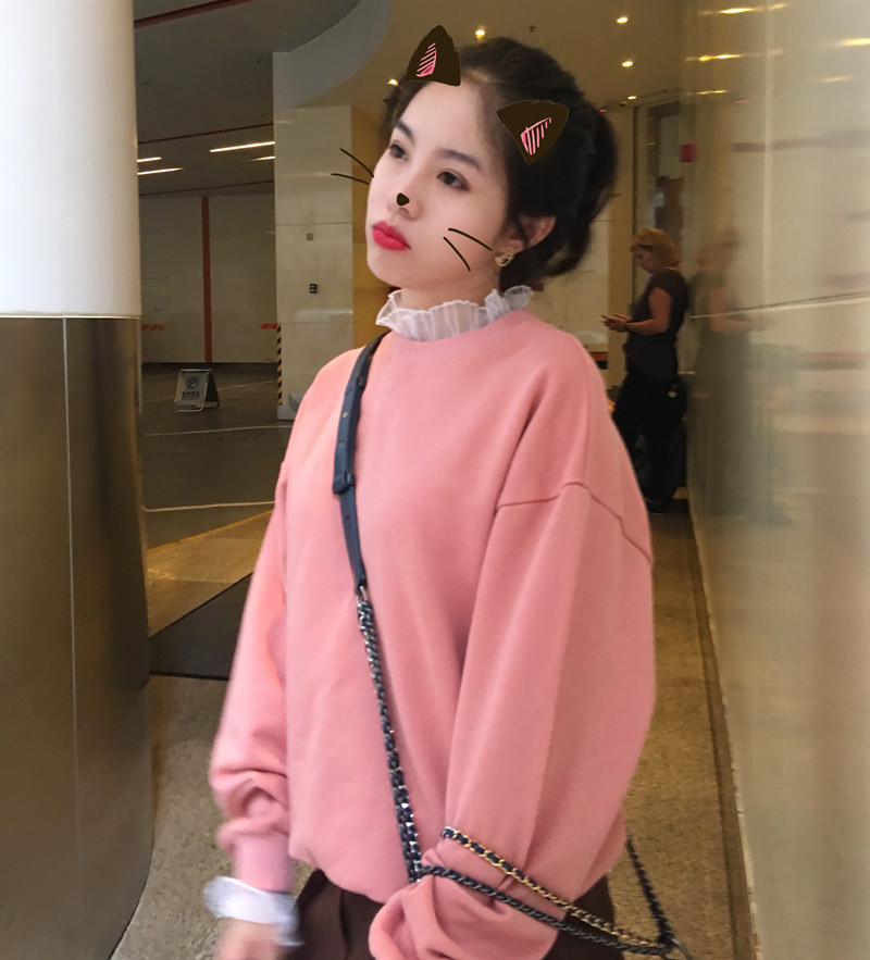 Via Vela) short version sweater women 2019 new spring and autumn small long-sleeved pink lazy yellow cotton top