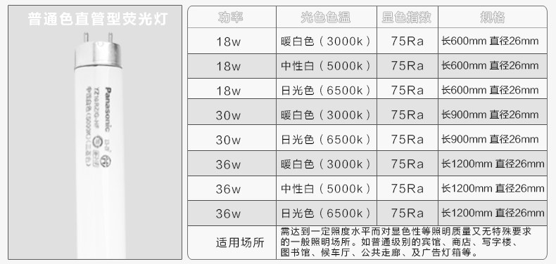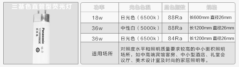 Panasonic T8 tri-base color fluorescent light lamp tube 18w 36w straight tube 6500K day light color YZ36RR