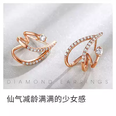Xia Diamond 18K gold diamond rose gold tide set fashion ear needle women's group inlaid with diamond jewelry accessories earrings women