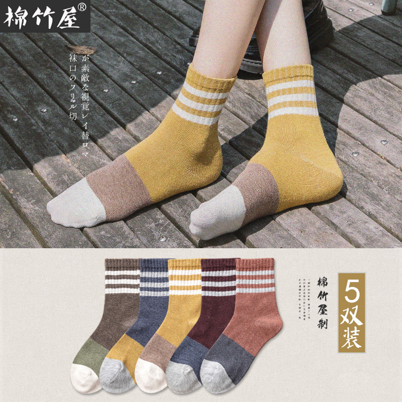 Socks Woman Midcylinder Cotton Socks Korean Version College Wind Korea Retro Trend Day Series Seasons Spring And Autumn women Sox stockings