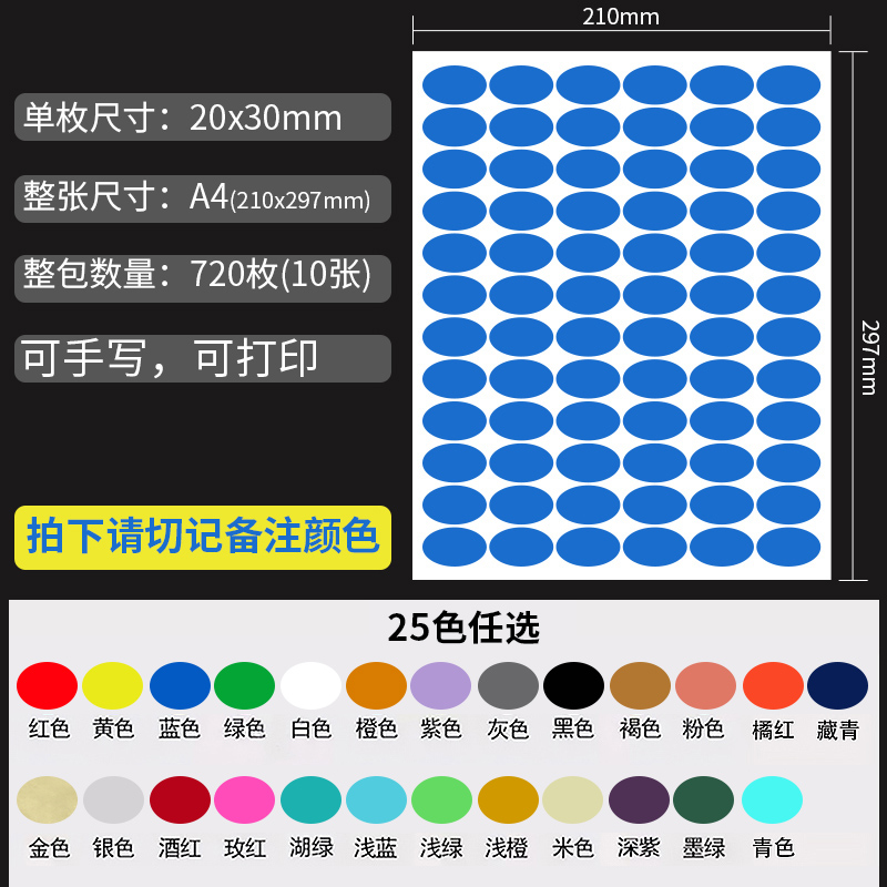 Macro Sea Color A4 Oval Label Patch Round Point No Dry Gum Paper Digital Month Pin Control Label Color Classification Blank Handwriting Print Stickers ROHS Mark GP12 Label 10 sheets 1 bag