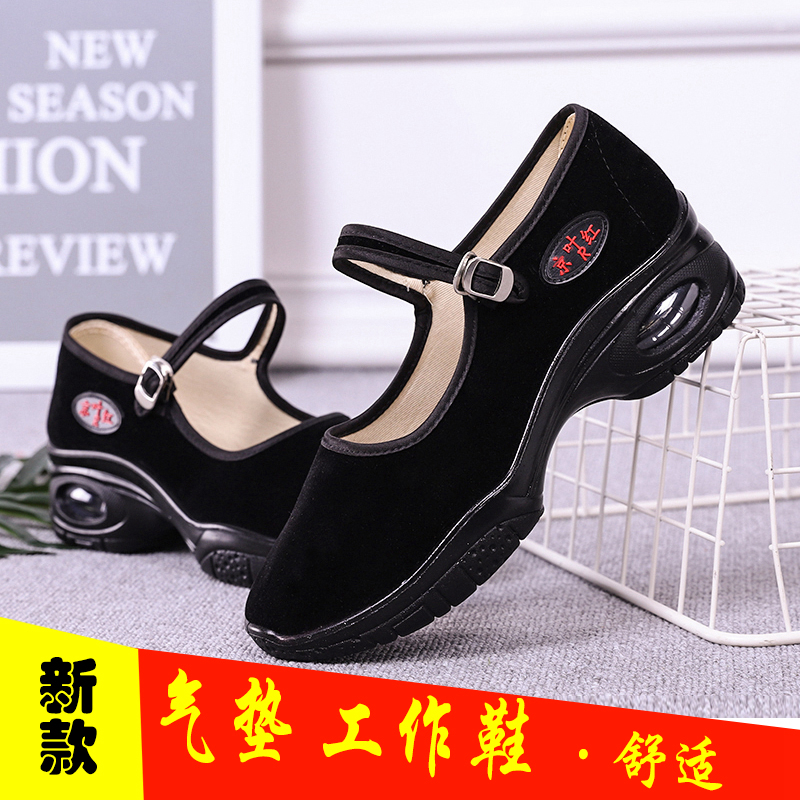 Old Beijing cloth shoes women's work shoes women's black soft-soled non-slip thick-soled high-heeled spring square dance women's shoes mother shoes