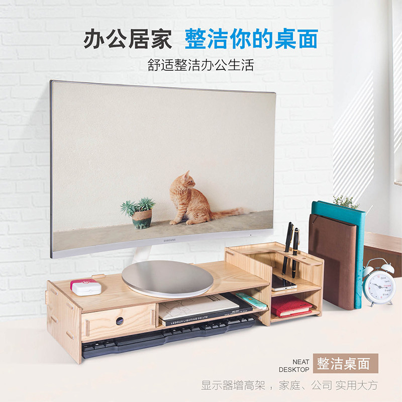 Computer desk type display heightening frame solid wood neck protection display screen bracket base desktop object storage box