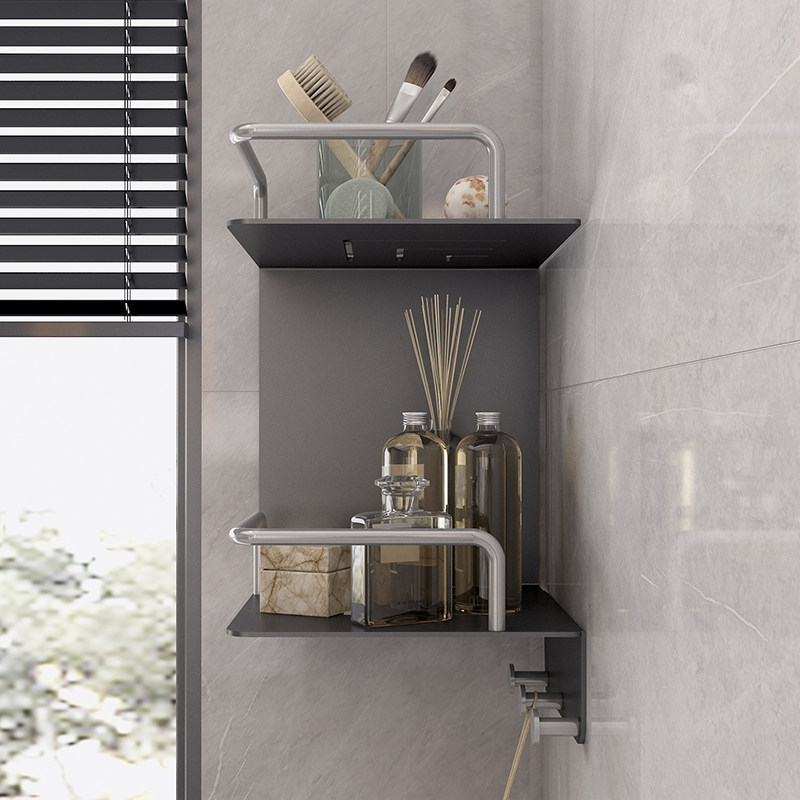 Space Aluminum Bathroom Shelving 2-layer triangular double-shelf Toilet Corner rack Makeup Room Shelving wall-mounted