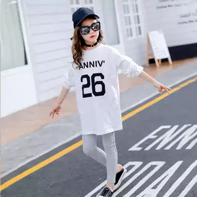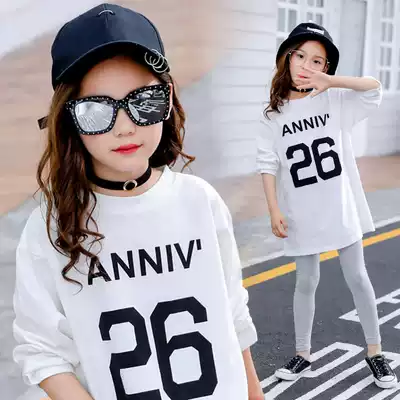 Girls ' long-sleeved T-shirt 2021 spring and autumn new cotton medium and long version bottoming shirt middle and large children's casual all-match top