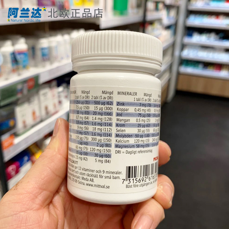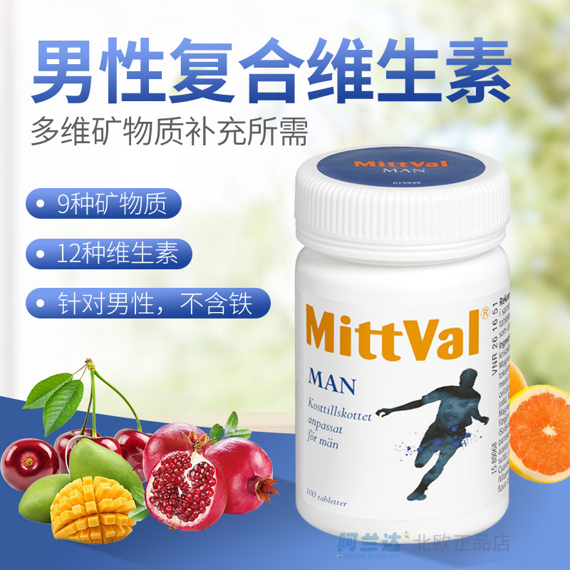 Swedish MittVal Man13-55 year old male complex vitamin complex Vitamin 100 grains