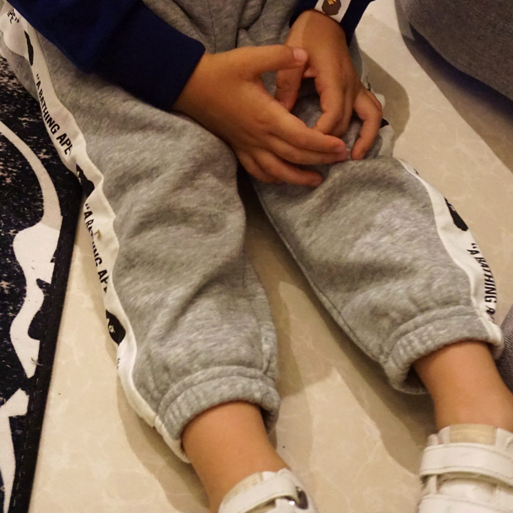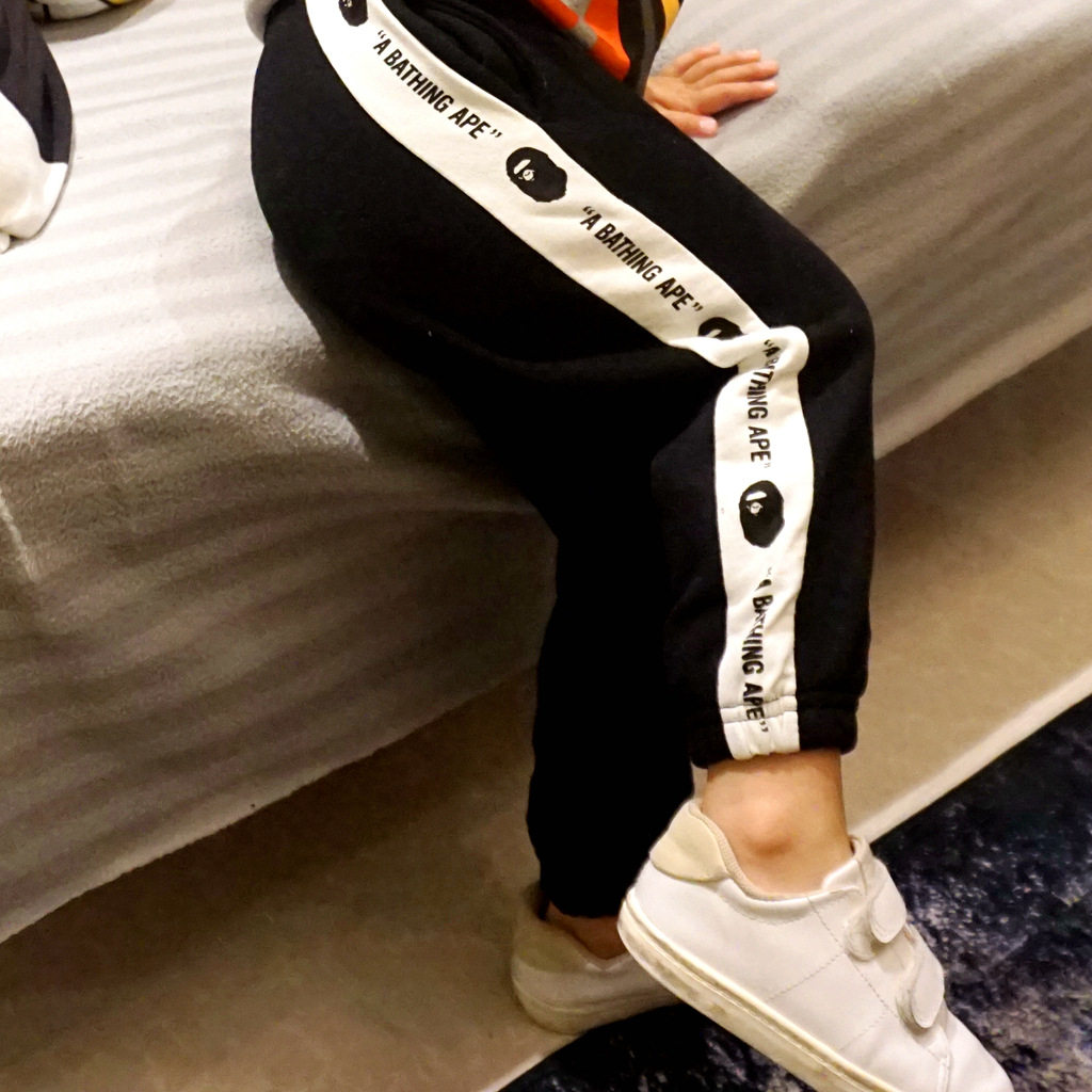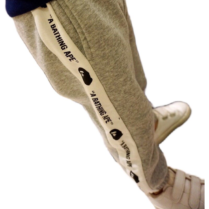 Tide Card Bape Boy Clothing Autumn Winter New Ape Heads Male And Female Child Guard Pants Side Letters Printed Plus Suede Trousers