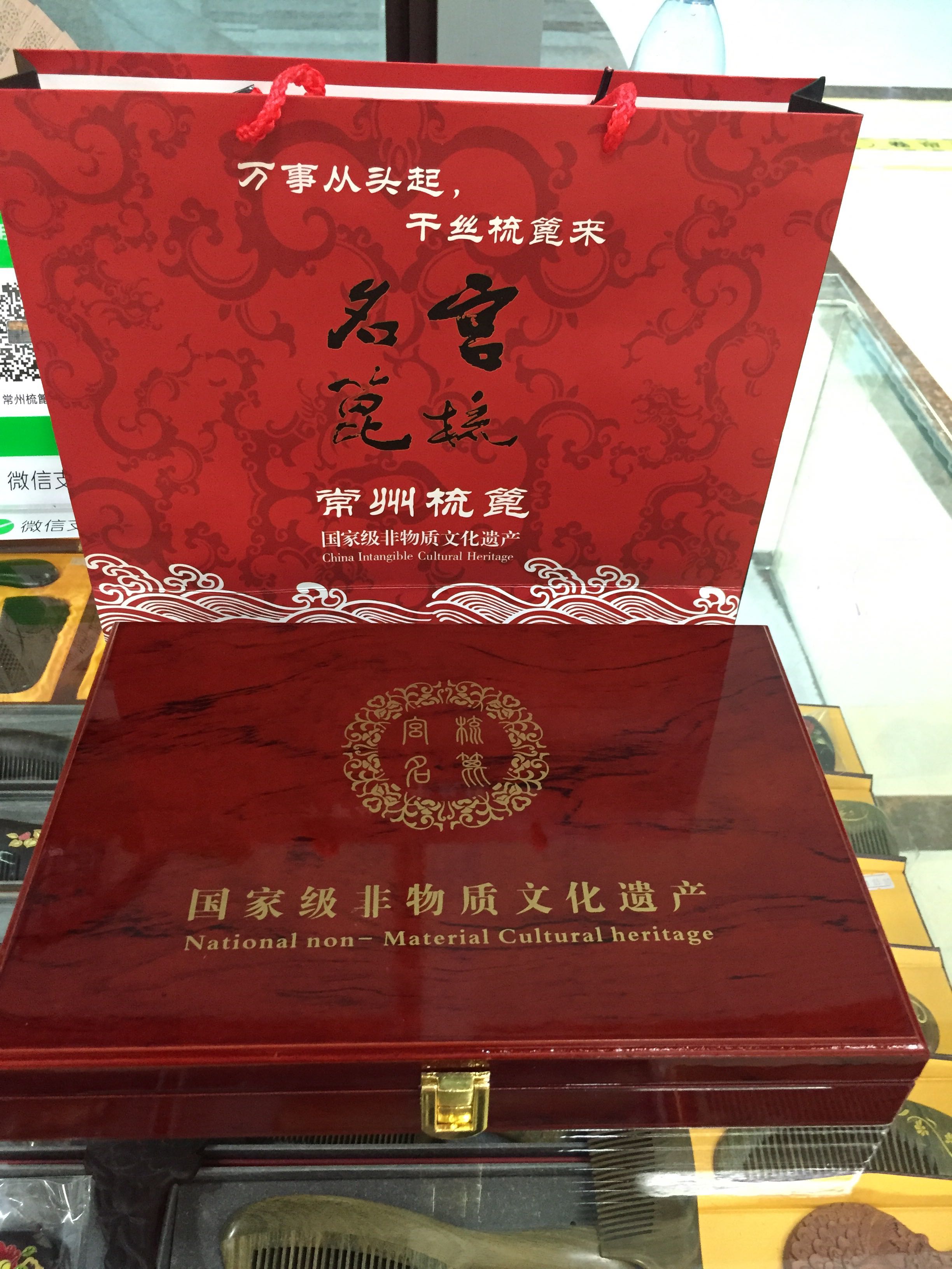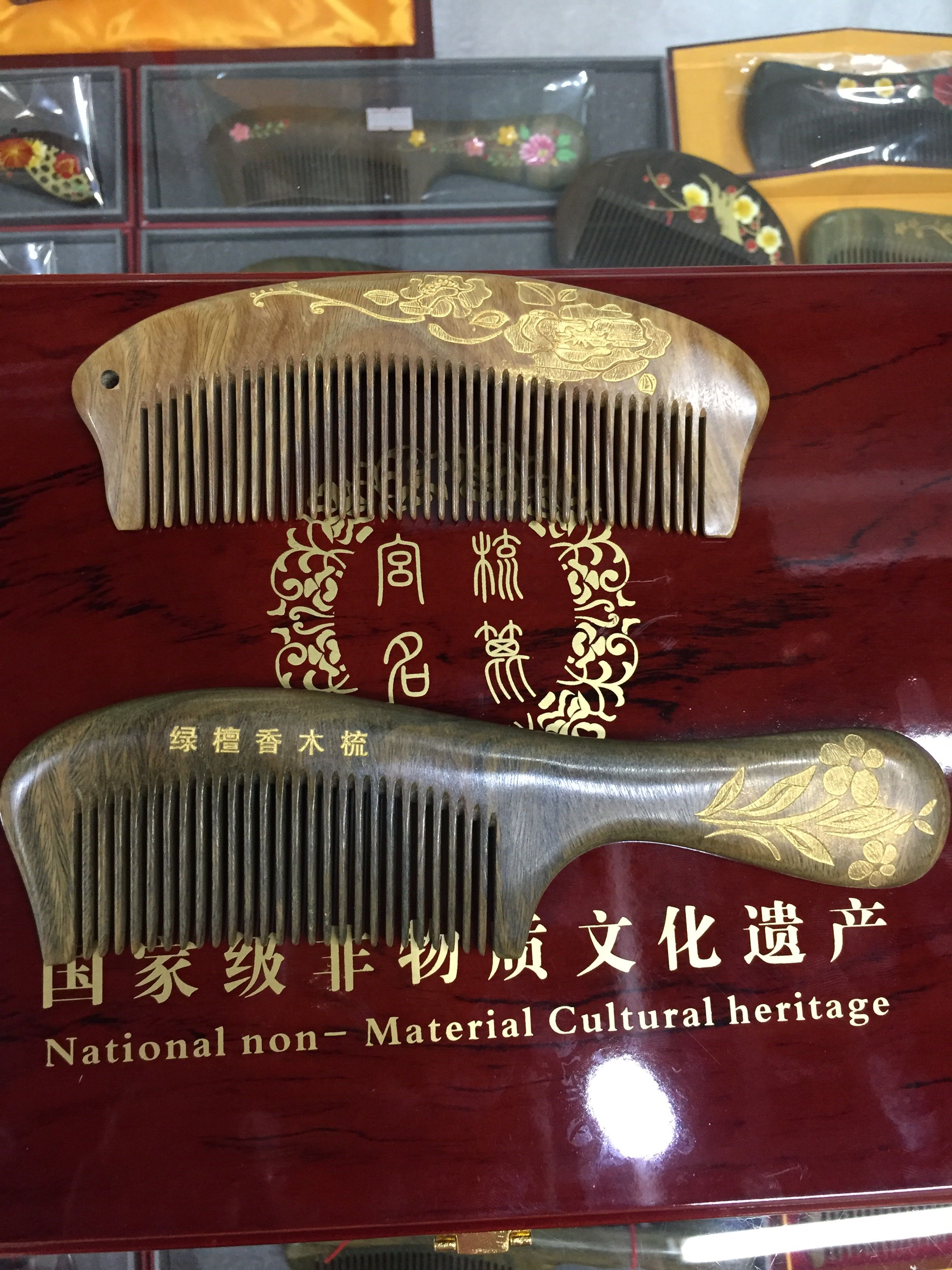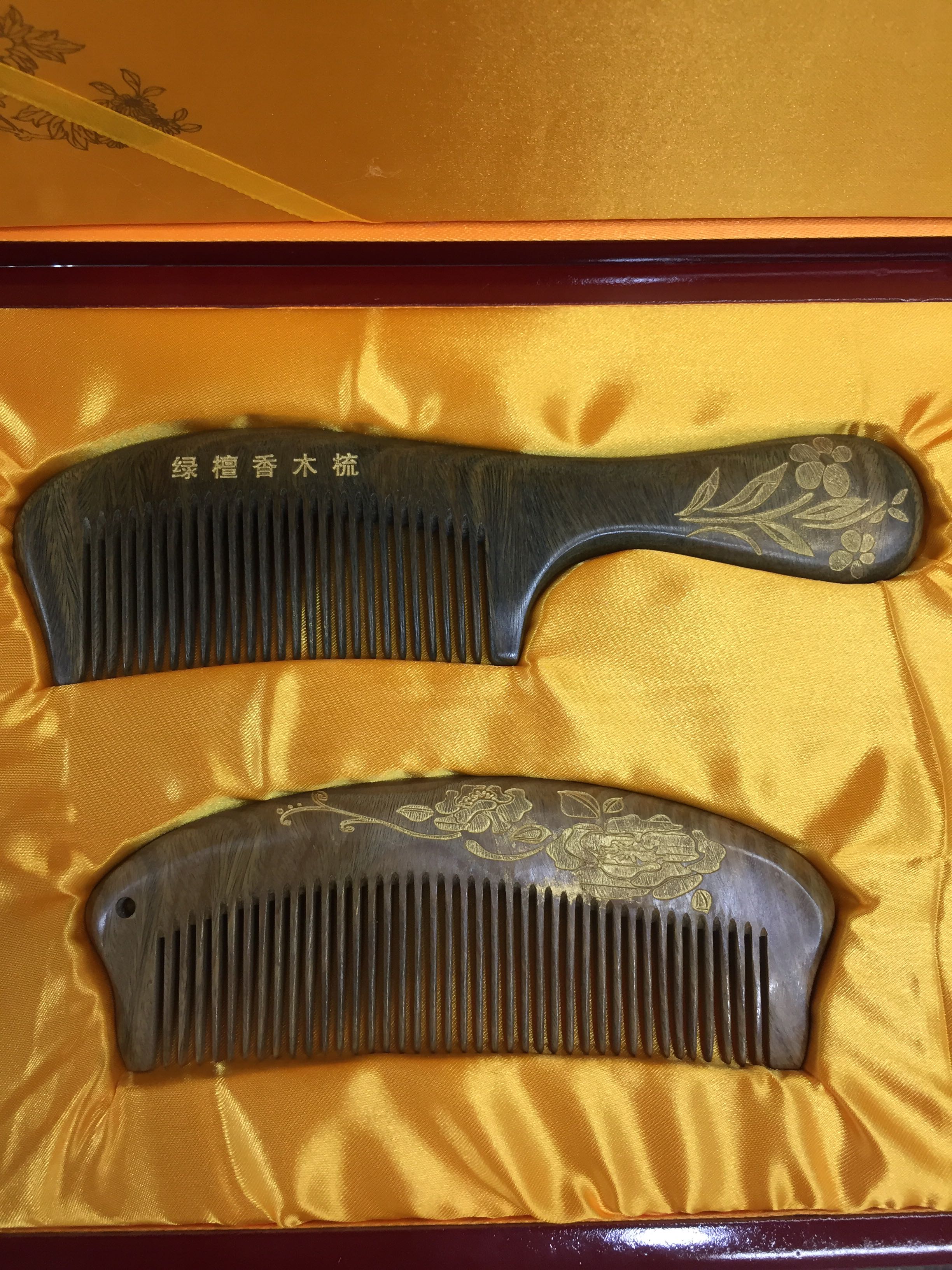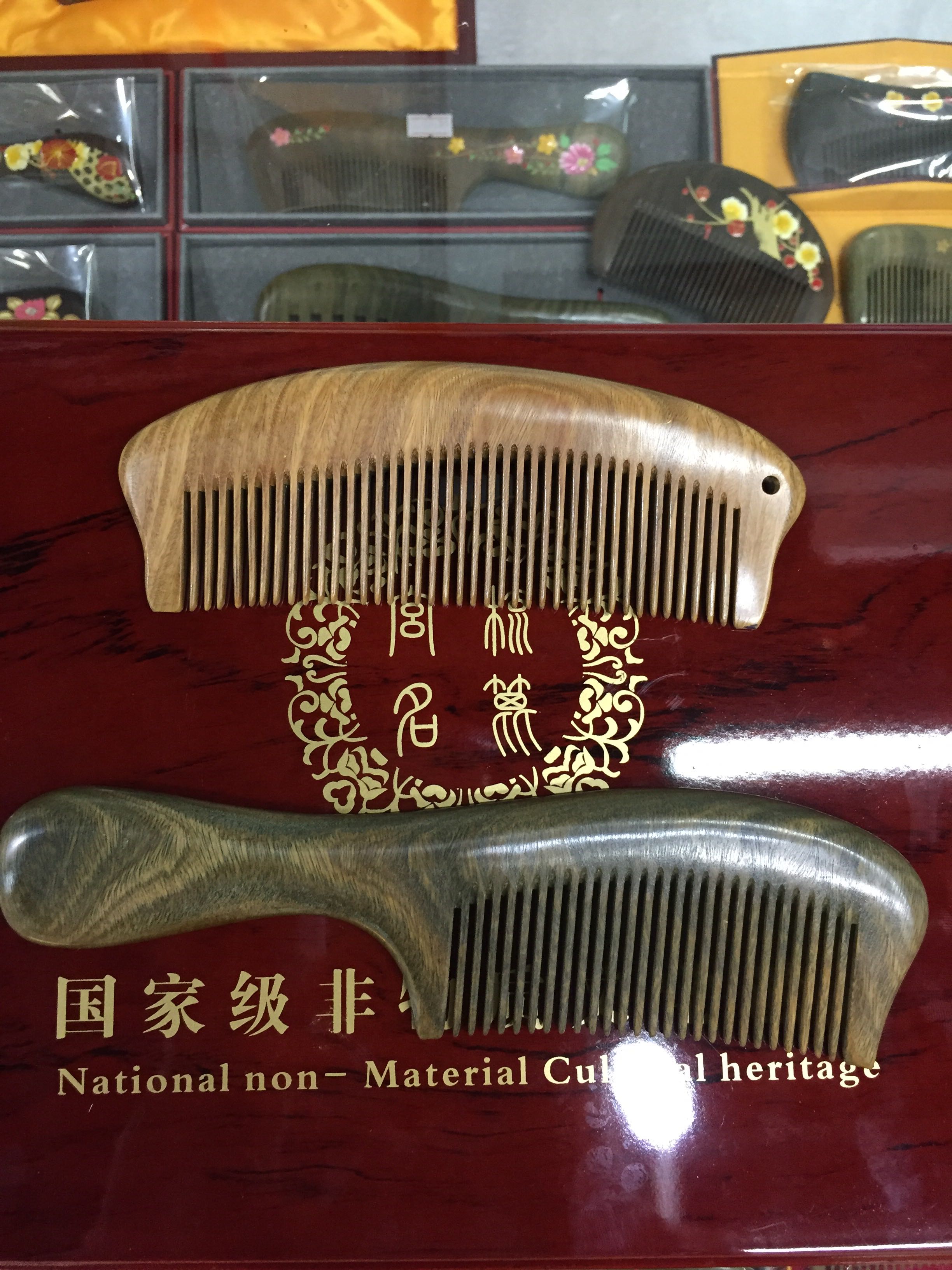 Changzhou comb factory boutique green sandalwood carving blossom stamping comb gift box gift bag free engraving